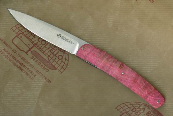Steak knife Gourmet, pink briar handle, Morotti Attilio design, is an elegant pocket knife to cut meat at home and restaurant. Made in Italy by Maserin.