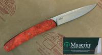 Steak knife Gourmet, red briar handle, Morotti Attilio design, is an elegant pocket knife to cut meat at home and restaurant. Made in Italy by Maserin.