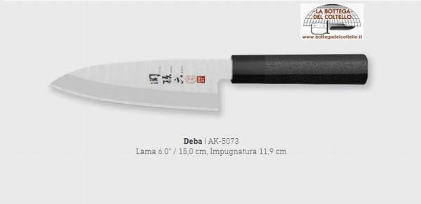 Kai kitchen knife Art AK5073 - DEBA Hekiju - Made in Japan. Blade: high carbon stainless steel, satin finish, 150mm length, single bevel for LEFT handed. Handle: nylon, octagonal shape. Package: plastic box.