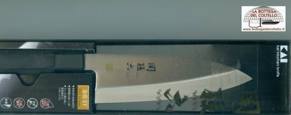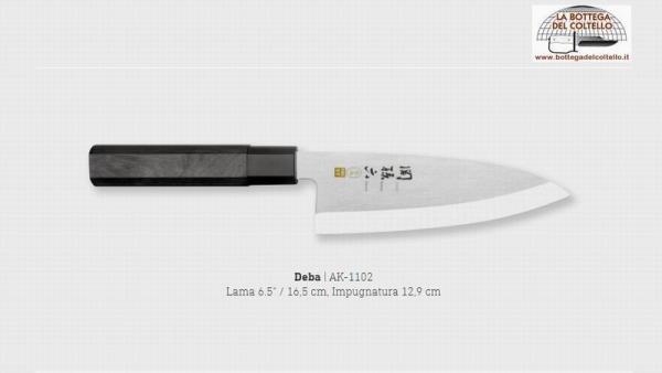 Kai kitchen knife Item AK1102 - DEBA Kinju - Made in Japan. Blade: high carbon stainless steel, satin finish, 165mm length, single bevel for right handed. Handle: nylon, hexagonal shape. Package: plastic box.