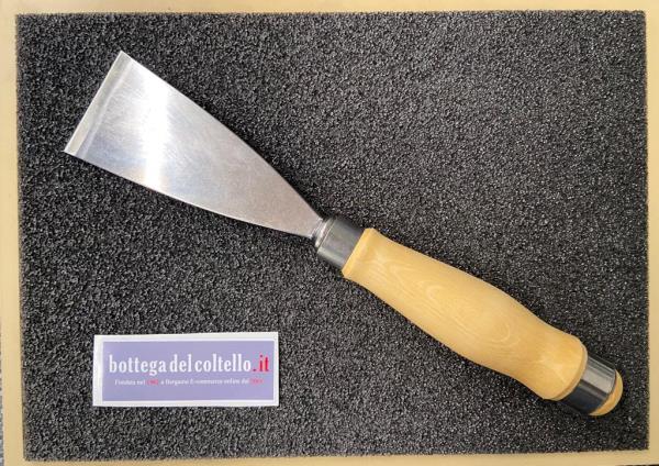 Weight gr 360 - Length mm 295 - Blade width mm 50. High carbon forged steel tool, 59-61 RC, with wood handle, sharpened and ready to use. This product has been discounted by 20% compared to official list in effect. WARNING: the image is multiple, the price refers only to 1/60 Heavy-duty fishtail gouge.
