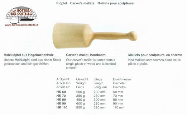 Carver's mallet Pfeil HK70 hornbeam - Turned from a single piece of wood and sanded smooth. Length 280 mm, weight g 350, Ø mm 70.
