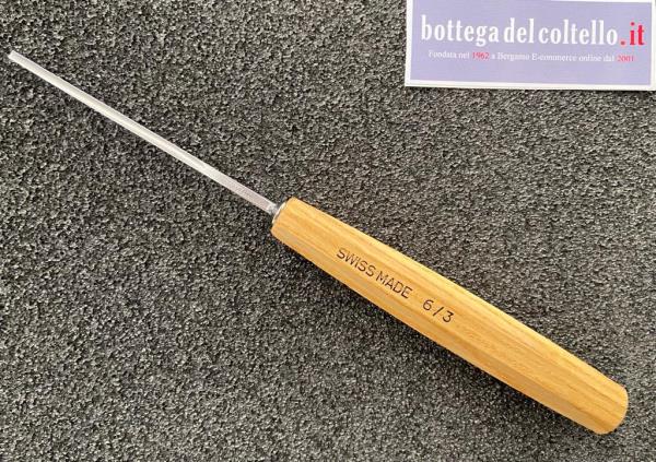 Pfeil straight gouge 6/3 curved edge - Straight tools - Gouges are used for shaping recesses and raised surfaces, for instance folds such as drapery. Made in Switzerland by Pfeil.