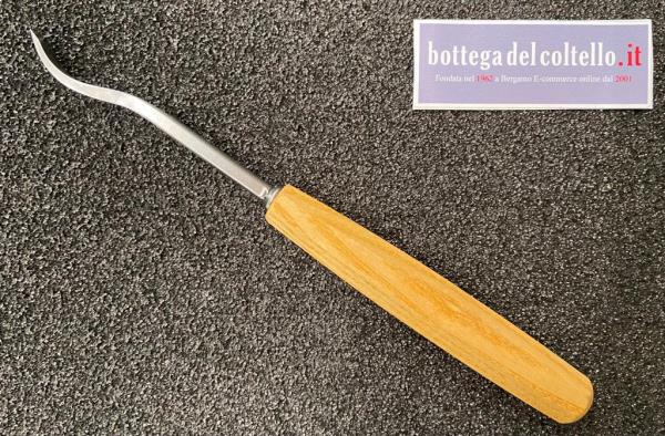 Carving tool. High carbon forged steel, 59-61 HRC, wood handle, sharpened and ready to use. Blade length 110-135 mm, overall 245-270 mm. This product is discounted by 20% compared to official list in effect.