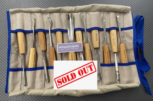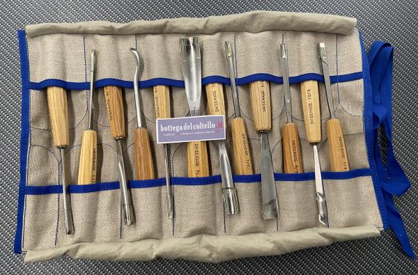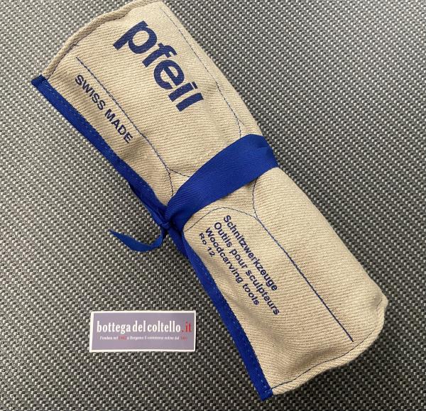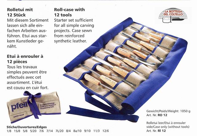 Pfeil Roll-case with 12 tools Ro 12 Swiss Made. Starter set with 12 tools sufficien for all simple carving projects.