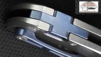 L’edizione limitata da 150 pezzi ha manico in titanio con design a “cerchi” ripreso anche nella clip in titanio, disponibili con finitura anodizzata blu o bronzo.