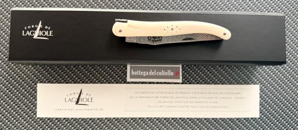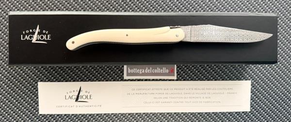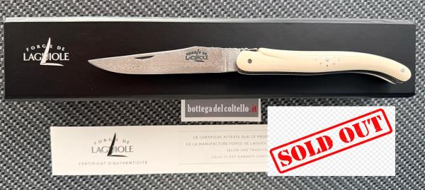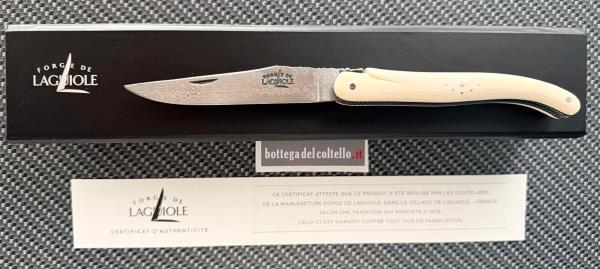 La forge de Laguiole coltello con lama in damasco inox e guancette in avorio fossile di Mammuth, molla e ape lavorate a mano. Approfittate degli sconti promozionali di questo periodo