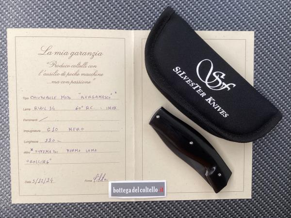 Silvester Coltello chiudibile modello bergamasco con impugnatura in G10 nero; segni particolari: bellissimo!