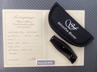 Versione rivisitata e impreziosita del tipico coltello da pastore delle valli bergamasche. Lama in acciaio inossidabile RWL 34 - 60 HRC, impugnatura in G10 nero, chiusura rolling, lunghezza totale - aperto - mm 220. Silvester è il nome d'arte di Fabrizio Silvestrelli, coltellinaio italiano residente a Lecco, che dice di sè: "Produco coltelli con l'ausilio di poche macchine ...ma con passione".