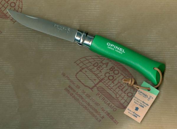 Collezione Opinel, Colorama 7 verde: la ben nota qualità e il prezzo vantaggioso dei coltelli pieghevoli Opinel in questa versione colorata con stringa. Prodotto in Francia.