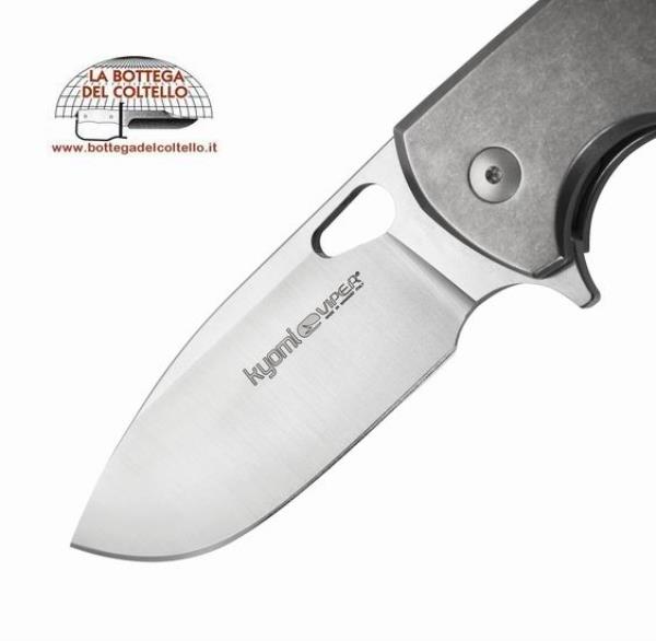 Kyomi è un frame lock compatto, che unisce l’inconfondibile design di Jesper Voxnaes a finiture curate e soluzioni produttive all’avanguardia, come i cuscinetti a sfere e la possibilità di scegliere fra due diversi distanziali posteriori: titanio e full titanio. Comodo da impugnare e da portare, grazie all’assenza di spigoli vivi e alla previsione di una robusta clip reversibile in titanio, viene offerto con guancetta sinistra in varie soluzioni di materiali.