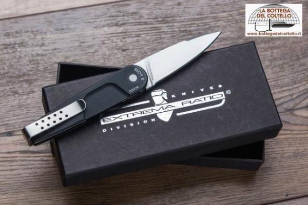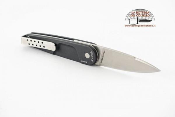 Extrema Ratio cod. 04.1000.0226/SAT BD1 R è un coltello chiudibile con la lama dal profilo spearpoint modificato, arrotata con filo piano e un falso controfilo sul dorso della punta. L’apertura avviene grazie all’ estensione “Razor” del codolo che consente un utilizzo ambidestro. Un tradizionale blocco di tipo liner lock, semplice ma solido, trattiene la lama in apertura. La clip reversibile con fori di alleggerimento agevola il porto in tasca mantenendo il peso del coltello al minimo. Sgusci fresati sui lati dell’impugnatura agevolano una presa solida e facilitano le transizioni d’impugnatura.