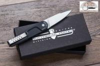 Scheda tecnica pubblicata dal produttore: Peso: g. 75 oz 2.7 - Lunghezza lama: mm 70 in 2.75 - Lunghezza totale: mm 170 in 6.7- Spessore Lama mm 2.5 in0.1 - Materiale Lama: acciaio Böhler N690 (58HRC) - Finitura lama: satinata - Arrotatura lama: filo piano - Materiale impugnatura: alluminio anticorodal anodizzato.
