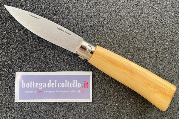 Coltello da pastore, con lama in acciaio al carbonio e impugnatura in legno Bambù, prodotto dall'azienda Codega di Premana.