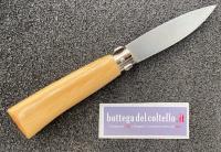 Modello Retto dotato di meccanismo per il blocco della lama sia aperta che chiusa. Dimensioni: lunghezza totale mm 230, lama mm 100, chiuso mm 130. Le striature naturali del legno possono essere diverse da quelle rappresentate nell'immagine.