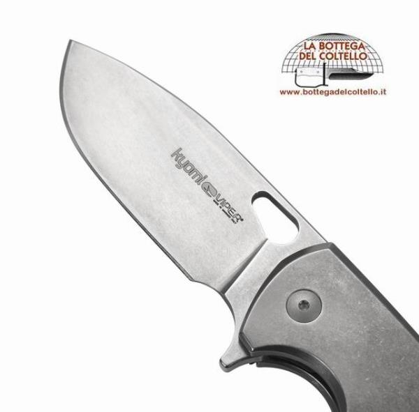Viper Tecnocut Italia Coltello chiudibile Kyomi V5940FC FIBRA DI CARBONIO Kyomi è un frame lock compatto, che unisce l’inconfondibile design di Jesper Voxnaes a finiture curate e soluzioni produttive all’avanguardia, come i cuscinetti a sfere e la possibilità di scegliere fra due diversi distanziali posteriori: titanio e full titanio. Comodo da impugnare e da portare, grazie all’assenza di spigoli vivi e alla previsione di una robusta clip reversibile in titanio, viene offerto con guancetta sinistra in varie soluzioni di materiali. Questo è KYOMI V5940FC ed ha la LAMA STONE WASHED in acciaio inossidabile N690Co. Guancetta sinistra in FIBRA DI CARBONIO. Distanziale TITANIO con foro per eventuale laccetto. Lunghezza totale mm 187, lama mm 82, peso gr 124. Imballo: scatola di cartoncino