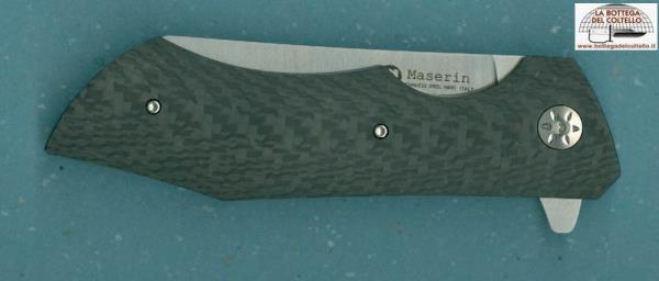 Coltello pieghevole AM-2 carbonio nero Made in Italy da Maserin in collaborazione con il coltellinaio artigiano Morotti Attilio.