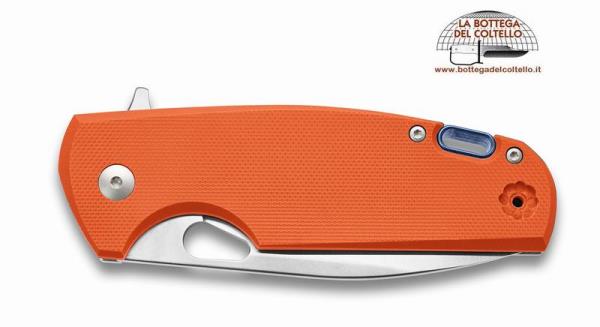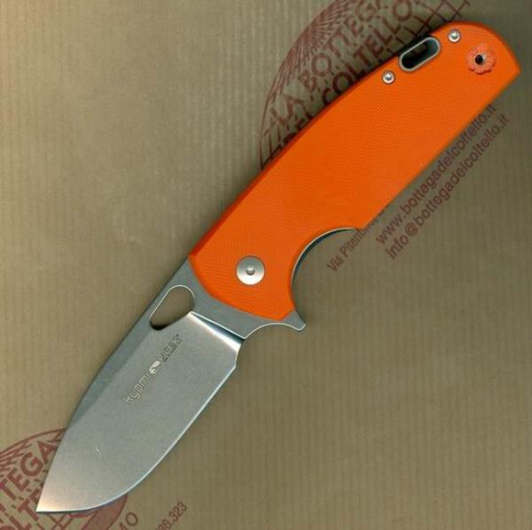 Coltello chiudibile Kyomi V5934GO G-10 arancio Viper Tecnocut Kyomi è un frame lock compatto, che unisce l’inconfondibile design di Jesper Voxnaes a finiture curate e soluzioni produttive all’avanguardia, come i cuscinetti a sfere e la possibilità di scegliere fra due diversi distanziali posteriori: titanio e full titanio. Comodo da impugnare e da portare, grazie all’assenza di spigoli vivi e alla previsione di una robusta clip reversibile in titanio, viene offerto con guancetta sinistra in varie soluzioni di materiali. Questo è KYOMI V5934GO ed ha la LAMA STONE WASHED in acciaio inossidabile N690Co. Guancetta sinistra in G-10 ARANCIONE. Distanziale FULL TITANIO che aggancia le guancette ed ha il foro per eventuale laccetto. Lunghezza totale mm 187, lama mm 82, peso gr 126. Imballo: scatola di cartoncino.