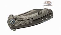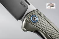 Lunghezza lama: 76mm - Lunghezza totale: 179mm - Spessore lama: 4mm - Peso: 111gr - Manico: frame in titanio Gr.5 Ti6AI4V lavorato in 3D - Lama: BOHLER M390 MICROCLEAN satinato, HRC 58-60 - Blocco: frame lock - Sistema di apertura: flipper rimovibile con cuscinetti a sfera e apertura ad unghia con flipper rimosso - Clip: solida in titanio Gr.5 Ti6AI4V lavorata in 3D - Distanziale: Titanio Gr.5 Ti6AI4V anodizzato blu - Imballo: astuccio sintetico con chiusura zip e passacintura e chiave torx 6/8.