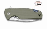 Viper Tecnocut Italia Coltello sportivo Kyomi V5940GG G-10 VERDE Kyomi è un frame lock compatto, che unisce l’inconfondibile design di Jesper Voxnaes a finiture curate e soluzioni produttive all’avanguardia, come i cuscinetti a sfere e la possibilità di scegliere fra due diversi distanziali posteriori: titanio e full titanio. Comodo da impugnare e da portare, grazie all’assenza di spigoli vivi e alla previsione di una robusta clip reversibile in titanio, viene offerto con guancetta sinistra in varie soluzioni di materiali. Questo è KYOMI V5940GG ed ha la LAMA STONE WASHED in acciaio inossidabile N690Co. Guancetta sinistra in G10 VERDE. Distanziale TITANIO con foro per eventuale laccetto. Lunghezza totale mm 187, lama mm 82, peso gr 128. Imballo: scatola di cartoncino.