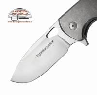 Viper Tecnocut Italia Coltello chiudibile Kyomi V5938TI TITANIO Kyomi è un frame lock compatto, che unisce l’inconfondibile design di Jesper Voxnaes a finiture curate e soluzioni produttive all’avanguardia, come i cuscinetti a sfere e la possibilità di scegliere fra due diversi distanziali posteriori: titanio e full titanio. Comodo da impugnare e da portare, grazie all’assenza di spigoli vivi e alla previsione di una robusta clip reversibile in titanio, viene offerto con guancetta sinistra in varie soluzioni di materiali. Questo è KYOMI V5938TI ed ha la LAMA SATINATA in acciaio inossidabile N690Co. Guancetta sinistra in TITANIO. Distanziale TITANIO con foro per eventuale laccetto. Lunghezza totale mm 187, lama mm 82, peso gr 157. Imballo: scatola di cartoncino.
