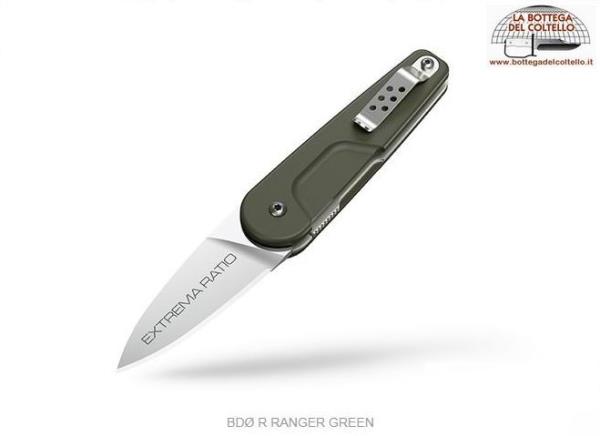 ExtremaRatio BD0R Ranger green è un piccolo coltello two-inch nail, con meccanismo di chiusura liner lock, prodotto dall'azienda toscana Extrema Ratio nelle versioni black, desert, Hcs, Ranger Green e Wolf Grey.