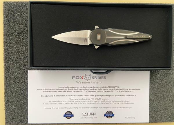 Fox Saturn knife Simonutti design, FX-551 Ti versione con lama satinata in acciaio M390 e impugnatura in titanio