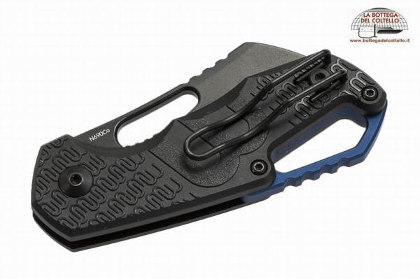 Lama: BOHLER N690Co, rivestimento Idroglider nero, HRC 58-60 - Manico: FRN NERO - Peso: 70g - Spessore lama: 3.0 mm - Lunghezza lama: 49mm - Blocco: liner lock - Sistema di apertura: foro pollice - Distanziale: alluminio anodizzato con foro per moschettone - Clip: a filo, reversibile in acciaio inox - Imballo: Scatola di cartoncino e chiave torx 6/8.