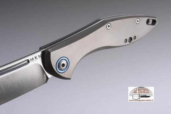 Questo è MK MY01-T Fara titanio. Caratteristiche tecniche pubblicate dal produttore: Lunghezza lama 76mm - Spessore lama 2,5mm - Lunghezza totale 178mm - Peso totale: 65gr - Manico: titanio Gr.5Ti6AI4V - Acciaio lama: Bohler M390 Microclean, HRC 58-60 - Accessori: fodero in pelle con passacintura. Confezione: scatola di cartone.