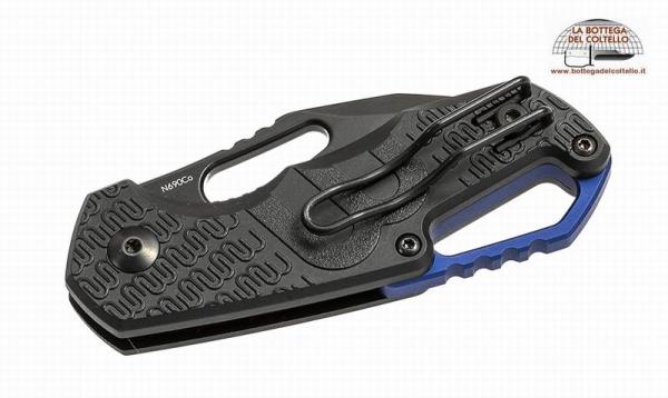 Lama: BOHLER N690Co, stonewashed, HRC 58-60 - Manico: FRN NERO - Peso: 70g - Spessore lama: 3.0 mm - Lunghezza lama: 49mm - Blocco: liner lock - Sistema di apertura: foro pollice - Distanziale: alluminio anodizzato con foro per moschettone - Clip: a filo, reversibile in acciaio inox - Imballo: Scatola di cartoncino e chiave torx 6/8.
