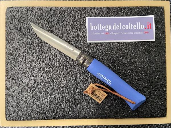 Opinel Coltello Chiudibile lama inox n° 7 manico legno tinto azzurro, originale.