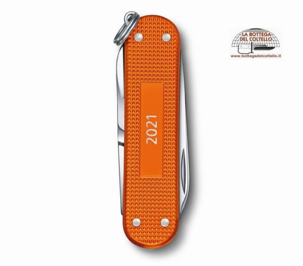 Victorinox art. 0.6221.L21 Classic Alox - Modello da collezione con l’anno 2021 stampato sul retro. Guance in alluminio realizzate in Svizzera, incise e anodizzate per il massimo della durata nel tempo. Strumenti: lama piccola, forbici, lima per unghie, cacciavite 2,5 mm, anello portachiavi. Dimensioni: altezza 6 mm lunghezza 58 mm. Peso netto 16.5 g. Confezione: scatola di cartoncino.