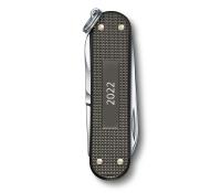 Victorinox art. 0.6221.L22 Classic Alox - Modello da collezione con l’anno 2022 stampato sul retro. Guance in alluminio realizzate in Svizzera, incise e anodizzate per il massimo della durata nel tempo. Strumenti: lama piccola, forbici, lima per unghie, cacciavite 2,5 mm, anello portachiavi. Dimensioni: altezza 6 mm lunghezza 58 mm. Peso netto 16.5 g. Confezione: scatola di cartoncino.