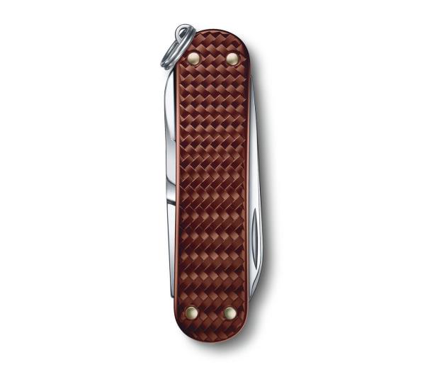 Collezione Classic Precious 0.6221.4011G Azel Brown con guancette Alox disegno " tessuto intrecciato" Un prezioso, essenziale e funzionale compagno di tutti i giorni coltellino svizzero con cinque funzioni.