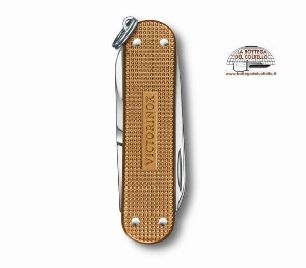 Strumenti: lama, forbici, lima per unghie, cacciavite 2,5 mm, anello portachiavi. Dimensioni: Altezza 6 mm - Lunghezza 58 mm - Peso 17 g. Guancette: ALOX di alta qualità. Confezione: scatola di cartoncino.