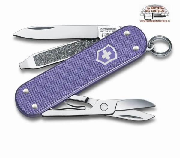 Coltellino svizzero Electric Lavender: un'icona di elegante funzionalità aggiornata alla grande con raffinate guance Alox in una gamma audace di colori vivaci.