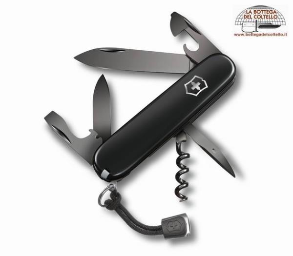 Coltellino svizzero Spartan PS black, elegantissimo con le guancette e gli strumenti neri realizzati con un processo noto come Polispectral. Swiss Made.