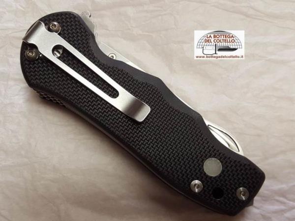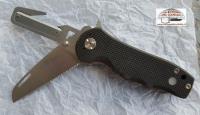 Art. 284/3G10N ASEK MK 3 - Lama tranciafuni in acciaio inossidabile Bohle N690 finitura stonewash. Impugnatura in G10 Nero antiscivolo. Dimensioni: lunghezza totale aperto 220 mm, chiuso 120 mm, lama 85 mm, peso 280 gr. Dotato di sega, frangivetro, clip,cordino e inserti florescenti. Fodero in nylon. Confezione: scatola di cartoncino nero.