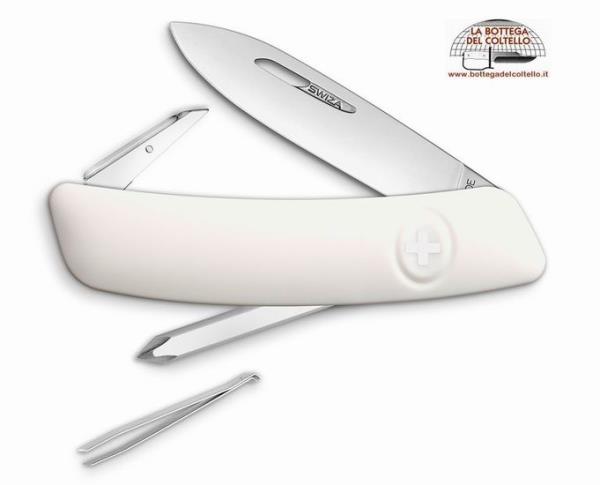Coltello tascabile SWIZA D02 bianco costituisce, come gli altri modelli SWIZA, la più rivoluzionaria riprogettazione del leggendario Coltellino dell'Esercito Svizzero.