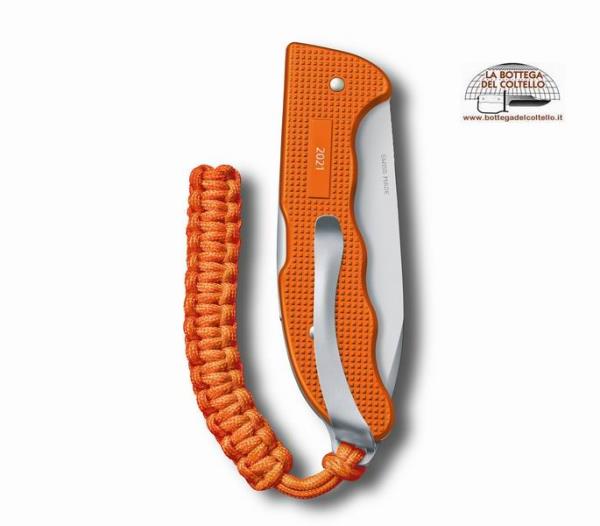 Victorinox Art. 0.9415.L21 Hunter Pro - Questo imponente coltello ha il foro per il cordoncino e la clip. Guance in alluminio realizzate in Svizzera, incise e anodizzate per il massimo della durata nel tempo. L’anno 2021 è stampato sul retro. Dimensioni: altezza 16 mm, lunghezza 136 mm. Peso netto 186 g. Confezione: scatola di cartoncino.