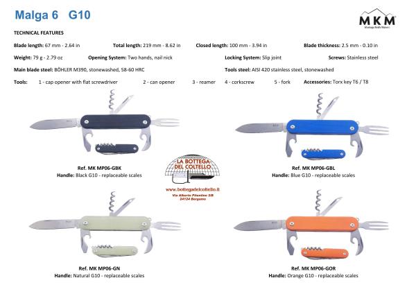 Coltello multifunzione Malga 6, con guancette in canvas micarta verde, Made in Italy by MKM - Maniago Knife Makers.