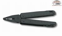 Funzioni: 1. Pinza multifunzione 2. Cacciavite 2 mm 3. Cacciavite 3 mm 4. Tagliafili per cavi fino a una durezza di 40 HRc 5. Cacciavite 5 mm 6. Levacapsule 7. Cacciavite 7,5 mm 8. Lama liscia 9. Lama parzialmente ondulata 10. Pressacavi 11. Lima per metalli 12. Sega per metalli 13. Sega per il legno 14. Alesatore / Punteruolo 15. Cacciavite Philips 16. Scalpello / Raschietto 17. Apricasse robusto 18. Piegafili 19. Spelafili 20. Raschiafili 21. Apriscatole 22. Righello (mm) 23. Righello (pollici) 24. Incavo per cavatappi 25. Tronchese per fili duri 26. Foro per cordino 27. Molle individuali 28. Sblocco delle lame 29. Fodero in Nylon. Dimensioni (chiuso): 115 x 35 x 15mm. Confezione: scatola di cartoncino. La finitura brunita conferisce eleganza e fornisce una migliore protezione contro la corrosione. Cod. 3.0323.3CN