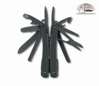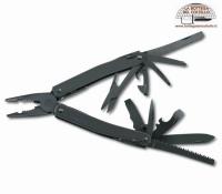 Articolo 3.0224.3CN con elegante finitura brunita che fornisce una migliore protezione contro la corrosione. Include: 1. Pinza multifunzione 2. Cacciavite 2 mm 3. Cacciavite 3 mm 4. Tagliafili per cavi fino a una durezza di 40 HRc 5. Levacapsule 6. Cacciavite 6mm 7. Apricasse 8. Lama grande 9. Forbici 10. Lima per metalli 11. Sega per metalli 12. Sega per legno 13. Alesatore / Punteruolo 14. Gancio multiplo 15. Cacciavite Phillips 1/2 16. Scalpello / Raschietto 17. Taglia guaine longitudinale 18. Piegafili 19. Spelacavi 20. Raschiafili 21. Apriscatole 22. Incavo per cavatappi 23. Tronchese per fili duri 24. Foro per cordino 25. Molle individuali 26. Sblocco delle lame 27. Fodero in Nylon.