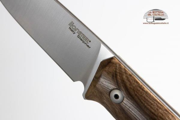 Lionsteel Maniago Art. B35 WN coltello a lama fissa - Le sue dimensioni contenute lo rendono facile da trasportare senza penalizzarne le funzionalità di coltello bushcraft. B35 è equipaggiato con una lama in acciaio Sleipner, che garantisce un'affilatura molto resistente. Disegnato da Michele Pensato, più conosciuto come "molletta" e attivo progettista dalla lunga esperienza, B35 ha un manico con una ergonomia particolare, che permette di impugnarlo agevolmente in entrambe le direzioni, ossia con il pollice della mano verso la lama oppure verso la parte terminale del manico.