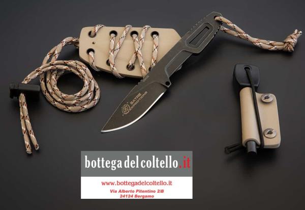 I coltelli della serie Expedition offrono le stesse performance, affidabilità ed alta qualità di tutti gli strumenti tattici che Extrema Ratio fornisce alle forze speciali militari e dell’ordine. Satre Expeditions, così come il modello Satre dal quale deriva, è un coltello lama fissa di dimensioni contenute, leggero ed estremamente resistente. Date le sue caratteristiche, trova impiego in un’ampia gamma di discipline ed utilizzi oppure come elemento di un kit EDC (Every Day Carry). E’ stato progettato in collaborazione con Daniele Dal Canto, istruttore Master Advanced F.I.S.S.S. (Federazione italiana survival sportivo e sperimentale). In modalità Neck Knife, tramite l’utilizzo di un cordino in paracord 550, è possibile tenerlo al collo mantenendo il coltello in verticale con il manico rivolto verso il basso. Gli occhielli metallici presenti sul fodero realizzato in Kydex pre-sagomato, permettono l’applicazione sia del cordino che del porta accessori. E’ disponibile su www.extremaratio.com come optional il sistema ULTICLIP che permette di agganciare il fodero oltre che alla cintura, anche a tasche, pantaloni, giubbotti, camicie e t-shirt. ULTICLIP rende possibile il posizionamento del coltello sia in orizzontale che in verticale, rendendolo utilizzabile sia dai mancini che dai destrorsi. La struttura full-tang scheletrata, permette di personalizzare il coltello usando il Paracord come rivestimento per il manico. Satre Expedition utilizza acciaio Böhler N690 trattato termicamente a 58 HRC con brunitura MIL-C-13924 e trattamento superficiale stone washed (finitura Dark Stone). Viene fornito con un fodero in kydex presagomato di colore desert sul quale è possibile agganciare il Firesteel per l’accensione di fuochi (fornito all’interno della scatola).