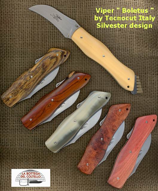 VIPER 5600 coltello chiudibile Boletus per raccolta funghi, manico in legno di bosso, by Tecnocut Maniago.