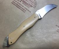 PER GLI APPASSIONATI CERCATORI DI FUNGHI,AMANTI DELLE BELLE LAME, DEI MATERIALI CALDI E DI QUALITA'. Boletus, coltello per funghi con lama e pennellino richiudibili. Sistema di tenuta in apertura "rolling" elaborato da Silvester. Lama in acciaio inox Buderus NITRO B HRC 58/59. Guancette in bosso. Lunghezza totale cm. 19, lama cm 7, chiuso cm 11
