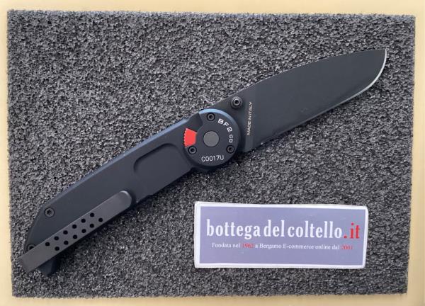 BF2 CD CLASSIC DROP: Lama in acciaio N690 annerita con il processo di carbonitrurazione di zirconio; guancette annerite tramite ossidazione anodica ad alto spessore. Il sistema di blocco della lama è il collaudato "liner lock", coadiuvato da un meccanismo di sicura da azionare manualmente protetto da un "carter". Clip reversibile. Peso gr 135, lunghezza totale (aperto) mm 212, lama mm 87.
