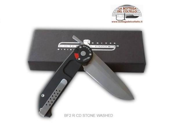 Extrema Ratio Italia. Il modello BF2 R mantiene tutte le caratteristiche del BF2, aggiornato con il nuovo sistema di apertura high speed Razor opening. Disponibile nelle versioni BF2 R Classic Tanto BLACK, Classic Tanto STONE WASHED, Classic Tanto DESERT, Classic Drop BLACK, Classic Drop STONE WASHED, Classic Drop DESERT.