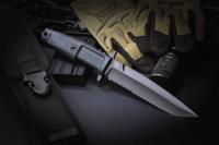 Il Requiem è un coltello a lama fissa dotato dell’innovativo fodero in nylon Aspis, studiato espressamente da Extrema Ratio per permettere lo sgancio rapido della lama ed il fissaggio all'interno dei passanti del sistema M.O.L.L.E, grazie a due clip multiposizione. La lama tipo stiletto è affilata solo da un lato e presenta una guardia. Disponibile nei colori Black, Desert, Ranger Green e Wolf Grey; questa è la versione Desert, cod. 04.1000.0478/DW.